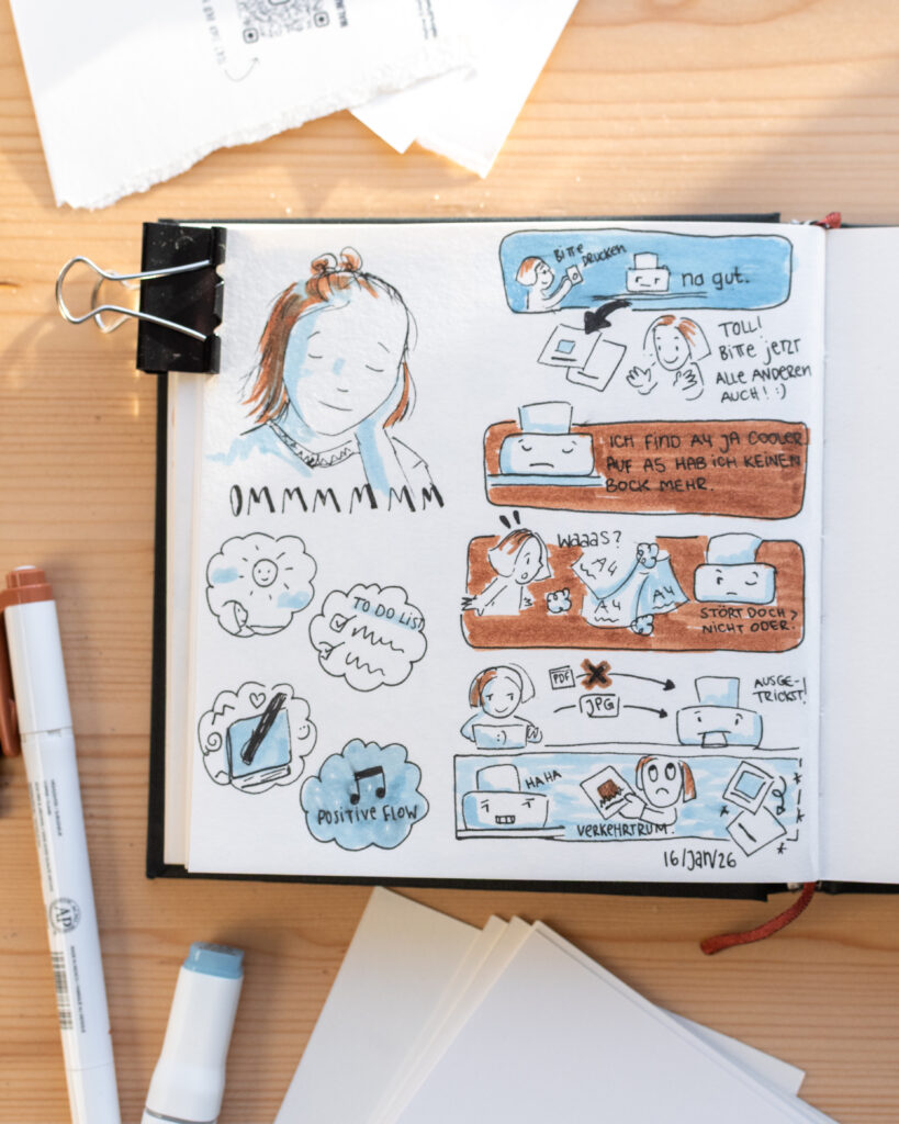 Drucker und ich werden wohl für immer eine Hass-Liebe führen. Jedesmal teste ich brav, ob mein Vorhaben so funktioniert, wie ich es mir vorstelle. Jedesmal ist der erste Testdruck nahezu erfolgreich. Doch wenn ich dann den Druckauftrag starte, wird entweder anderes Papier eingezogen, die Patronen sind leer oder es passiert etwas noch Unvorhergesehenes. Ich wette mit dir, wenn ich morgen eine DIN A4 Seite drucken möchte, wird erstmal Fotopapier eingezogen. 😉